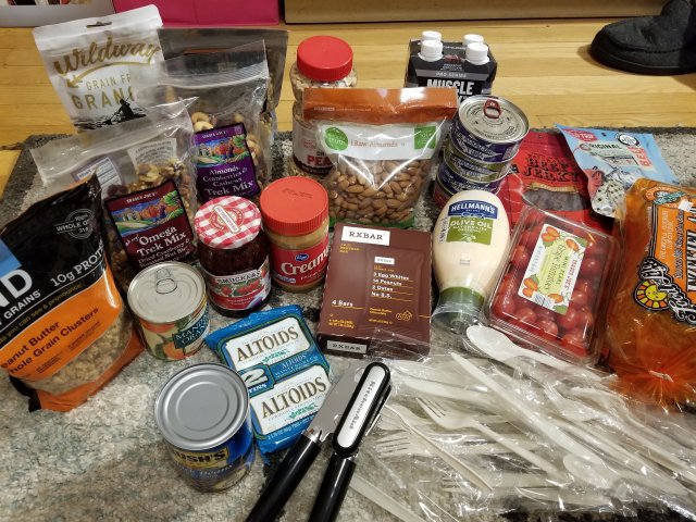 Fans of my 2017 posts will observe that this pales in comparison to the shelf-stable smorgasbord I amassed for my previous trip, including several days’ worth of yummy homemade granola and breakfast bars.