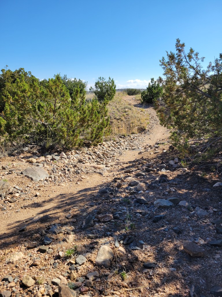 I did manage to sneak in an outdoor adventure or two. On Friday morning I hiked some of the trails near Placitas. These weren’t particularly difficult hikes, nor were they even that visually spectacular, but I’m badly out of shape and I needed to start with something light before I get into some real treks (as I’m sure I will later in this journey).