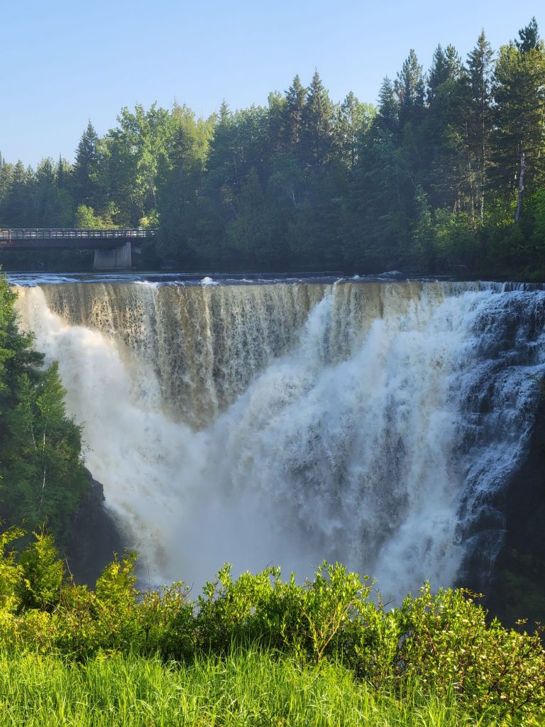 I experienced a similar splendor two days later at Kakabeka Falls, located a half hour West of T-Bay, only this payoff was more immediate. Mere meters from the parking lot a short trail leads to a slippery boardwalk that overlooks a roaring, resplendent waterfall.